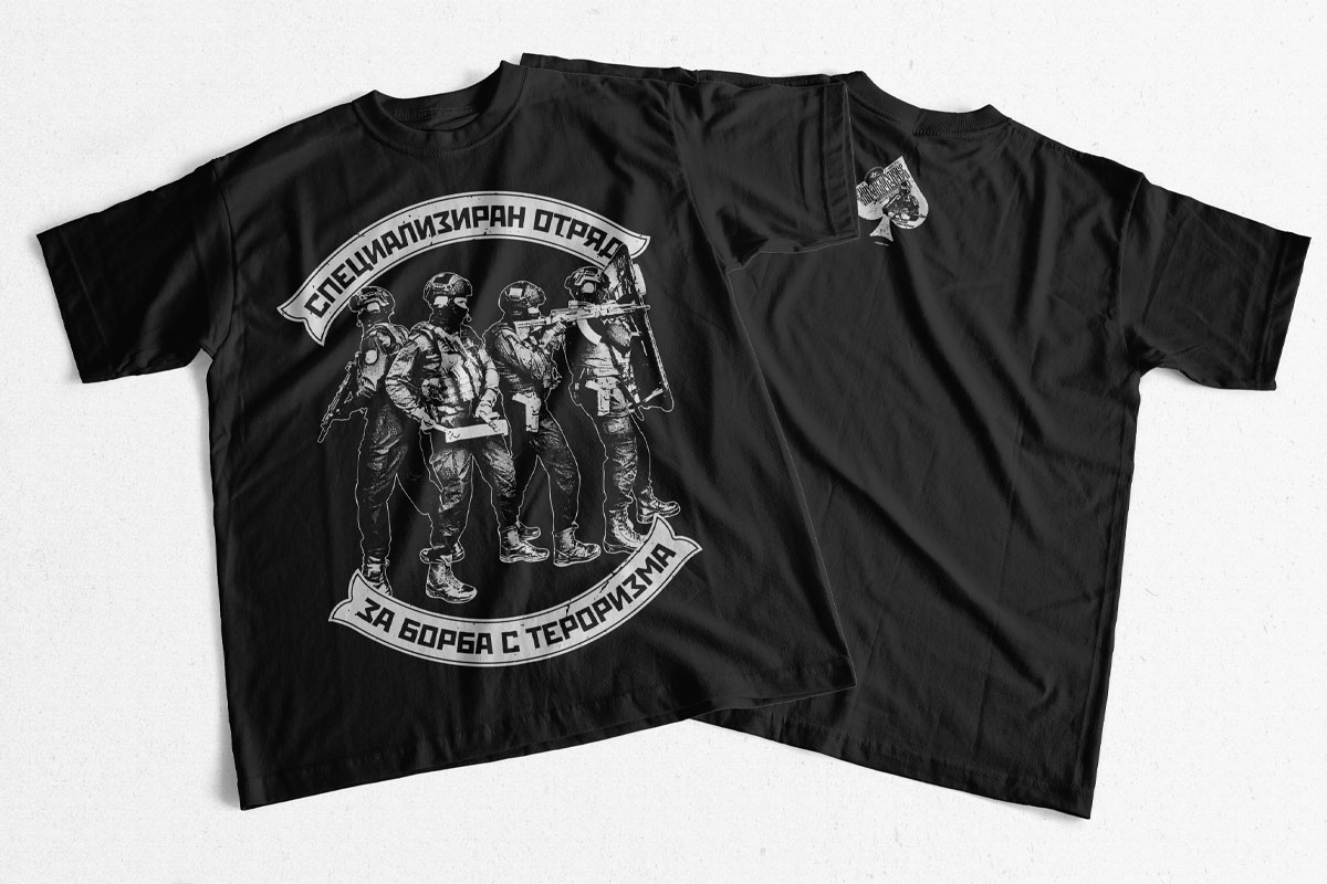 Тениска „Специализиран отряд за борба с тероризма v2.0“.
